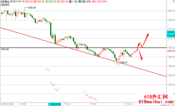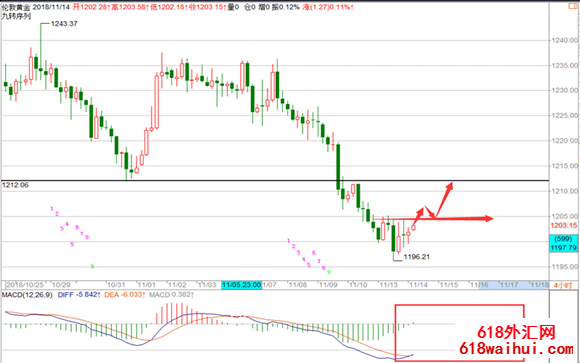 ¡¡¡¡»Æ½ð²ßÂÔ£ºÉÏÆÆ1205»Ø³·×ö¶à£¬Ö¹Ëð1200£¬Ä¿±ê¿´1210-1218
