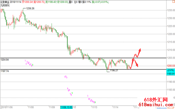 黄金策略:1197-8触及做多,止损1192,目标看1205-1212