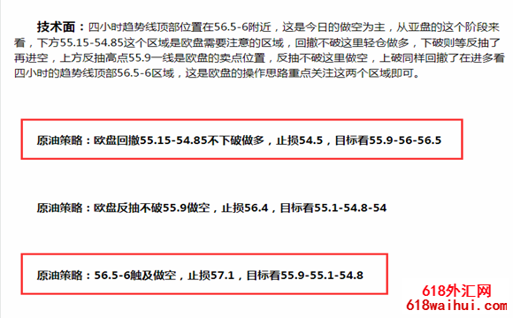 原油策略:美盘反抽不破55.9-56做空,止损56.5,目标看55.15-54.5