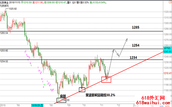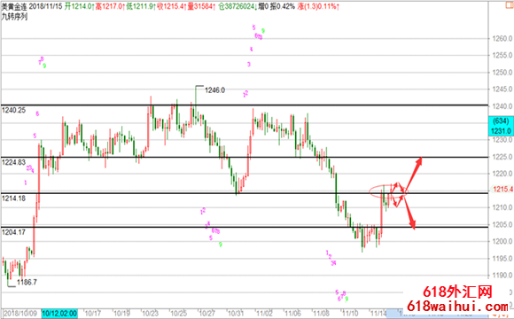 黄金策略:上破站稳1214回踩多,止损1209,目标看1224-25