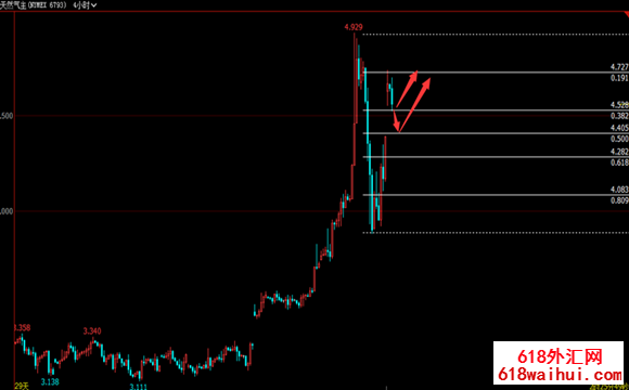 天然气:天然气今天高开高走,上方在触及小时级别的斐波那契回调线19.1%的4.73一线后走出一波回调,目前的价格在斐波那契回调线的38.2%位置附近,晚间关注4.550-500一线的得失,不破这里继续看涨气价即可,下破则看缺口位置4.4附近,触及这里做多,操作上以回调做多为主,具体的操作我们盘内给出
