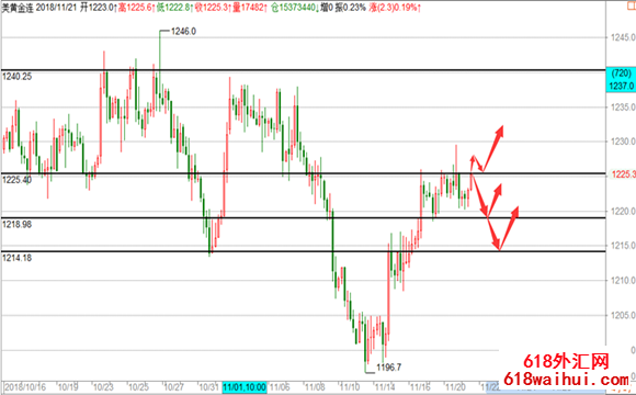 黄金策略:上破1225-26回撤做多,止损1220,目标看1230-1235