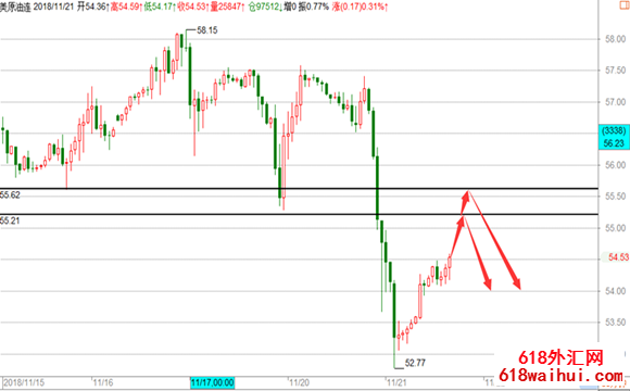 原油策略:55.6-5触及空,止损56.1,目标看54.8-54-53.5