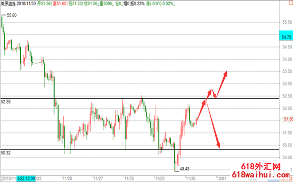 周四晚,一则消息令油价扭转日内颓势。据路透报道,俄罗斯同意需要减产,正与沙特在细节问题上进行谈判,俄罗斯石油企业和俄罗斯能源部认为需要与欧佩克一起减产。不过,仍在就减产的时机和幅度进行谈判。俄罗斯石油企业有意愿逐步减产,而不是从明年一月开始立即减产,欧佩克大会将于12月6日举行,届时可能会讨论产油国的减产协议。现在的问题是,俄罗斯需要减产,而减多少、减多快是其中最关键的一点。沙特现在建议OPEC及其盟国从2019年1月开始减产100万桶,以遏制价格下跌。如果俄罗斯与现有协议中的减产比例相同,其减少份额将达到16.6万桶/天。俄罗斯总统普京将在今天举行的G20峰会上与沙特王储穆罕默德会面,到时将会讨论具体的减产细节,昨天上方两则多空基本面,油价先跌后涨,今天的G20峰会三大产油国美国俄罗斯和沙特有可能就油市减产而举行会晤,今天还是基本面上的行情,日内重点关注G20方面的消息。